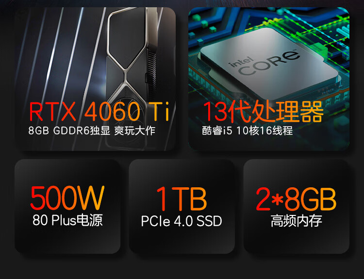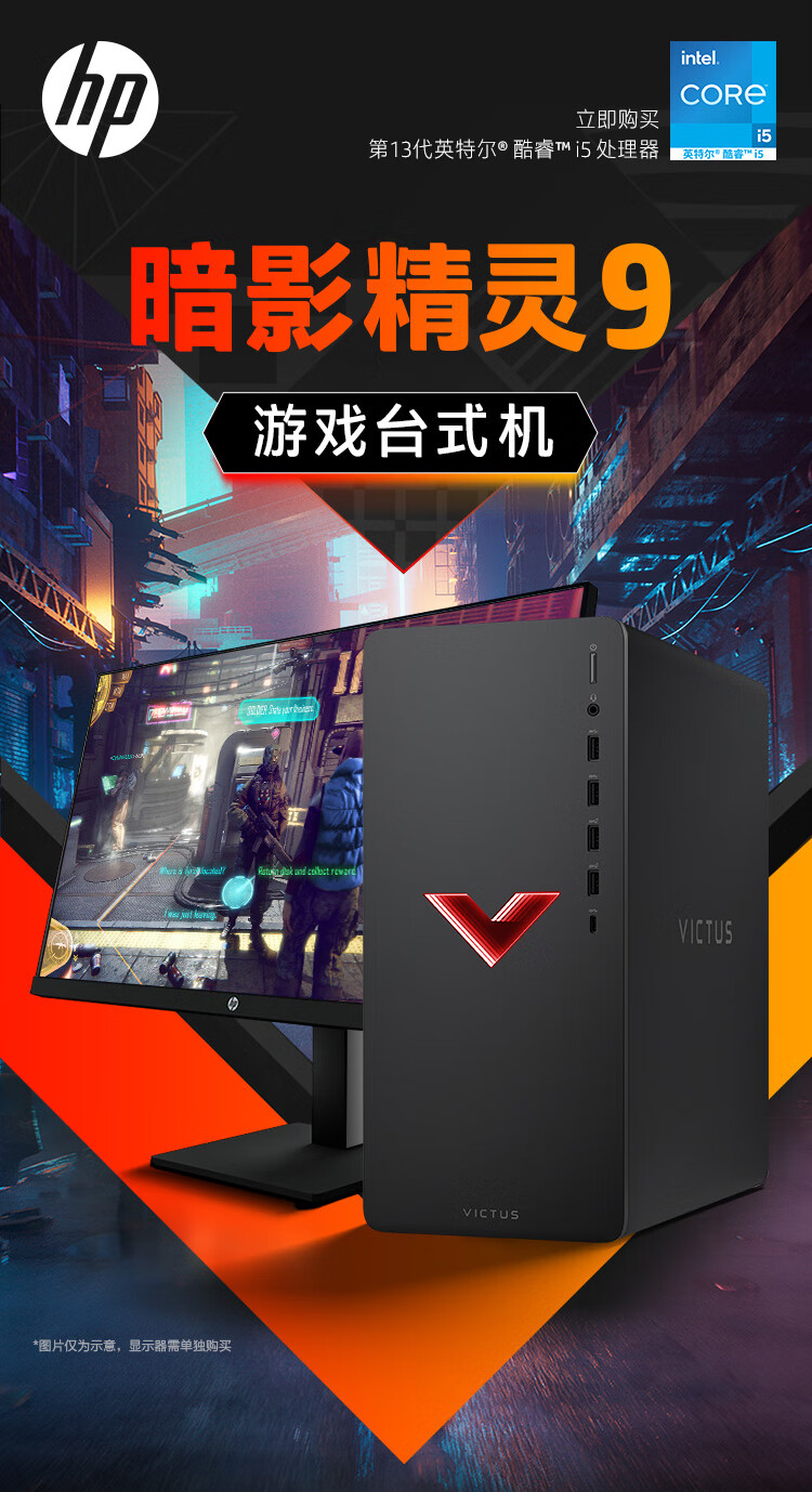 商品名称:惠普HP 暗影精灵9 台式电脑 游戏台式机主机 设计师电脑 13代i5-13400F RTX4060ti 8G独显 16G 1TBSSD
